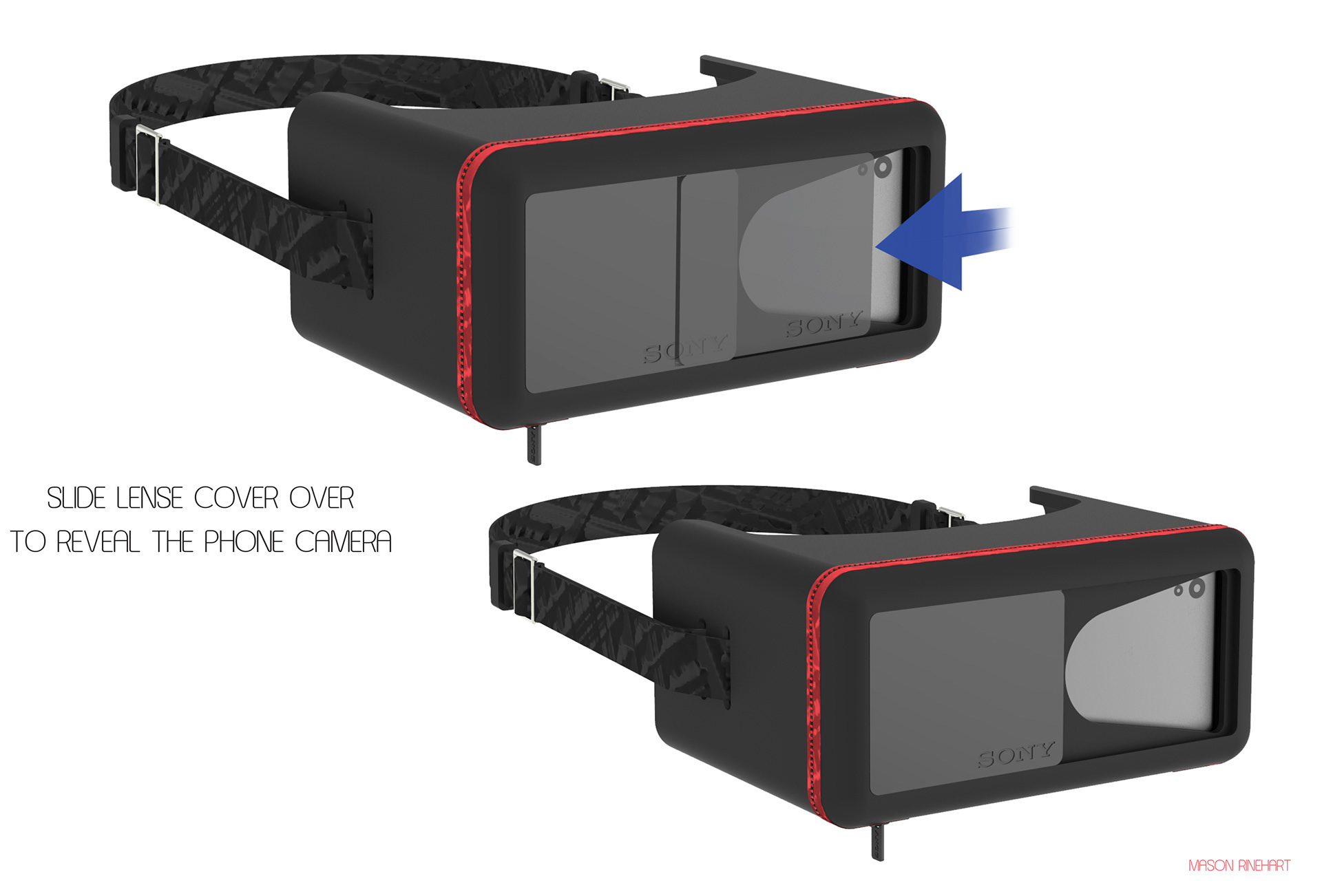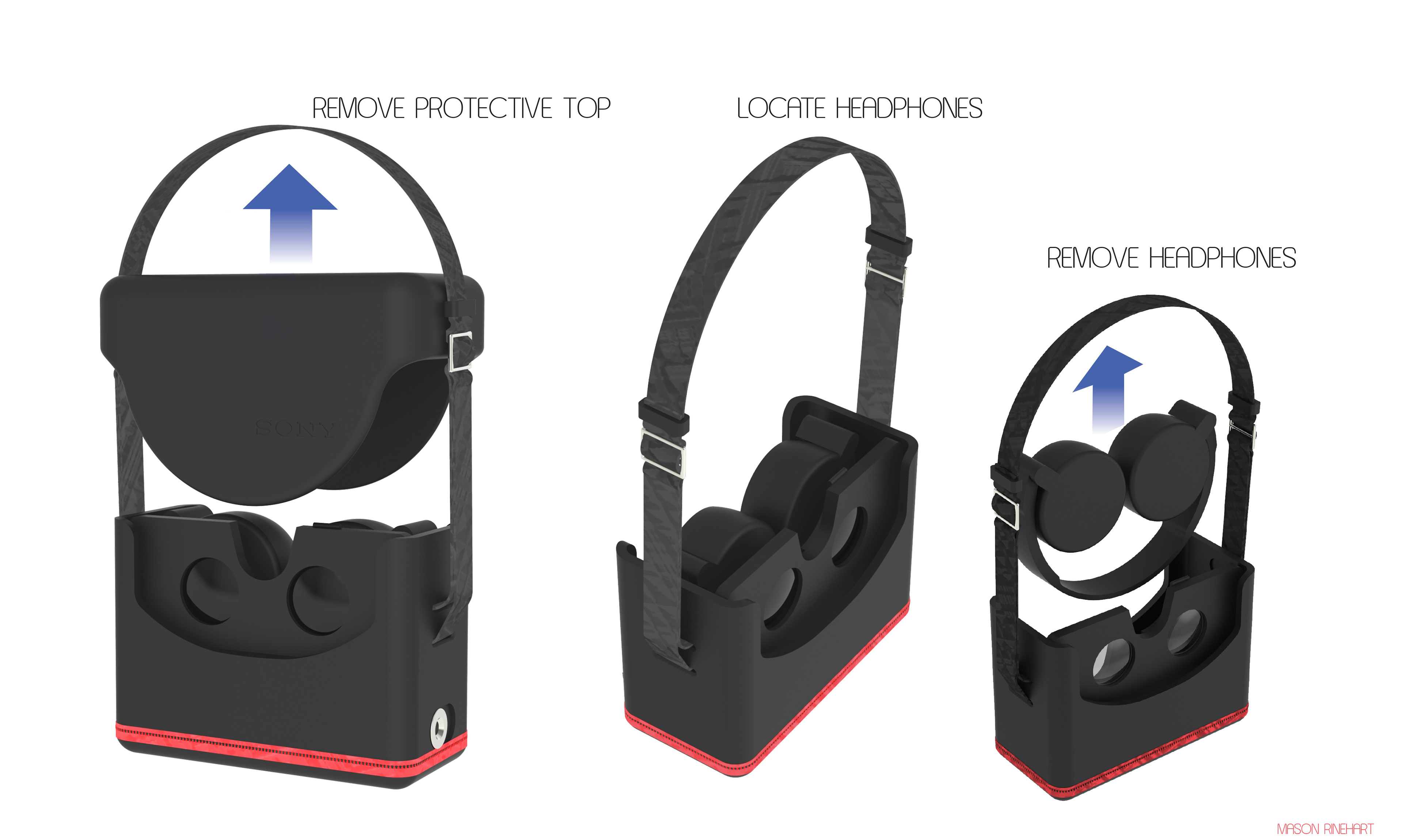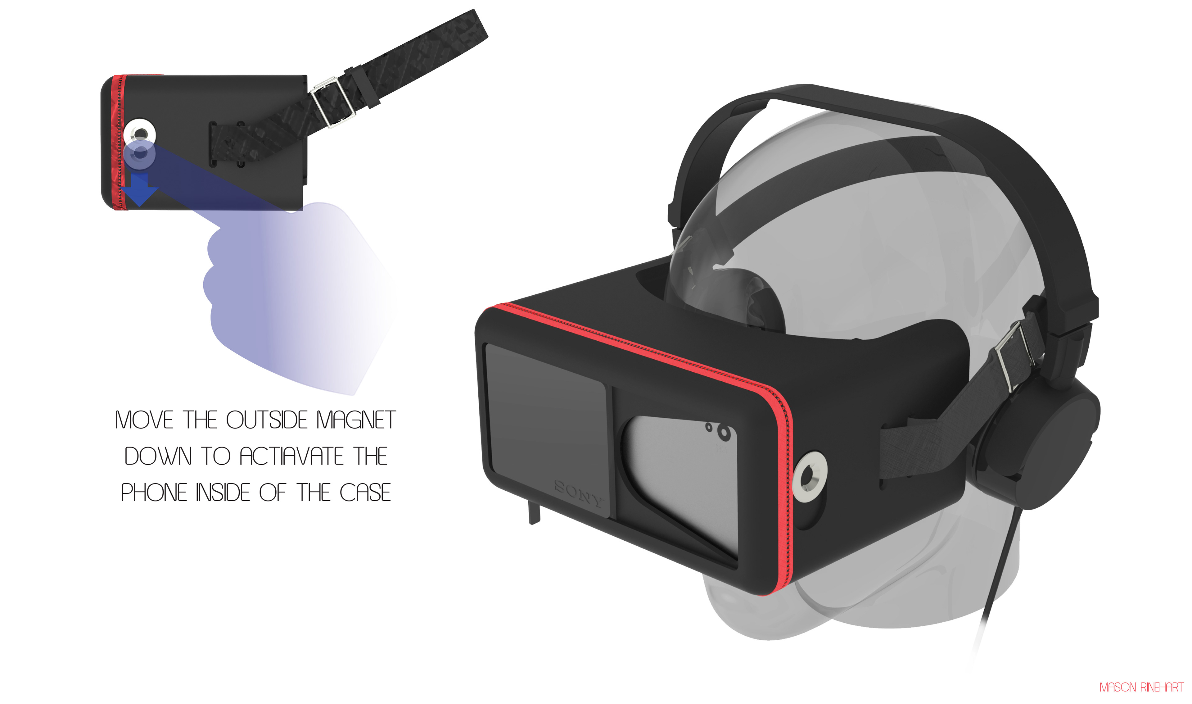 This VR headset was designed as a portable 3D viewer, allowing the user to insert their phone for an immersive experience with 3D videos and images. The case also allowed for a Sony portable over-the-ear headphone to be stored while the carrying strap cleverly doubled as an adjustable headband for convenience. Crafted from soft EVA foam, the case offered a luxurious feel while providing excellent protection.